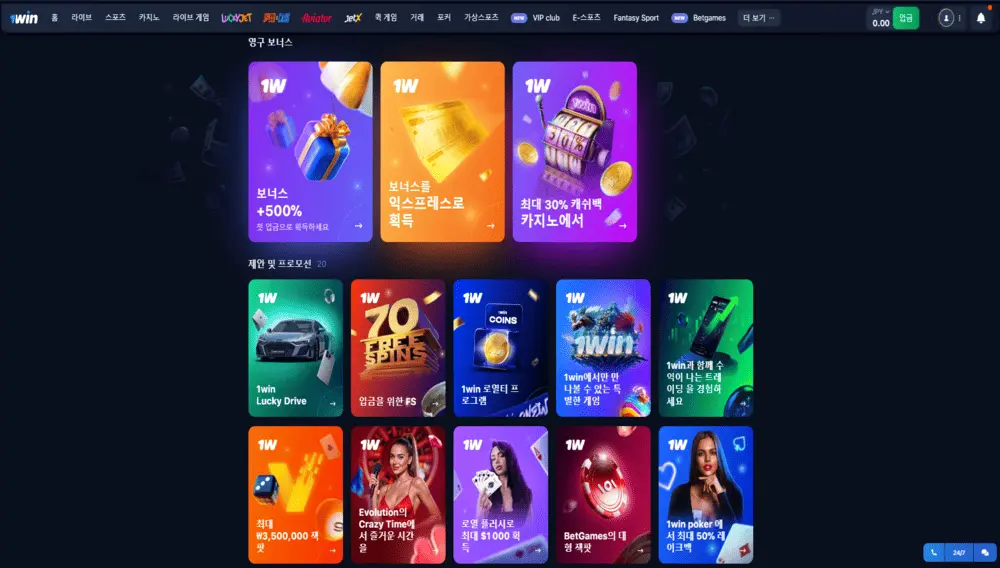 1Win 카지노 – 환영 보너스 최대 500% 및 500회 무료 스핀 제공