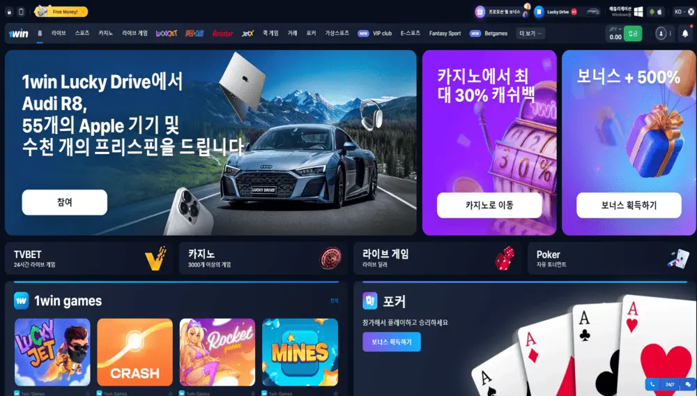 1WIN 카지노 2016년부터 전 세계적으로 인기 있는 온라인 카지노 및 스포츠 베팅 플랫폼입니다. Curacao eGaming 라이선스 (8048/JAZ2018-040)를 보유하고 있으며, 한국 이용자를 위해 KRW 결제, 익명 은행 송금, 편리한 결제 수단과 암호화폐를 지원합니다.